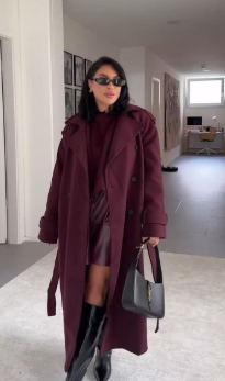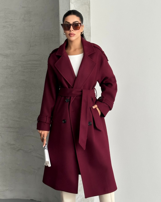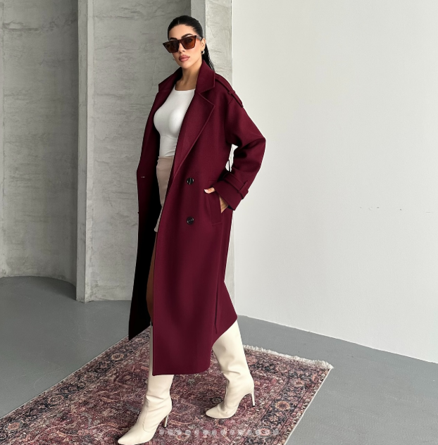 Damski zimowy płaszcz typu trench łączy długi, uporządkowany krój z paskiem w talii, który podkreśla sylwetkę. Dwurzędowe zapięcie nadaje mu ponadczasowy charakter, idealny do codziennych i bardziej formalnych stylizacji.