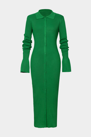 Damska sukienka prążkowana z długim rękawem | Sukienka maxi z guzikami