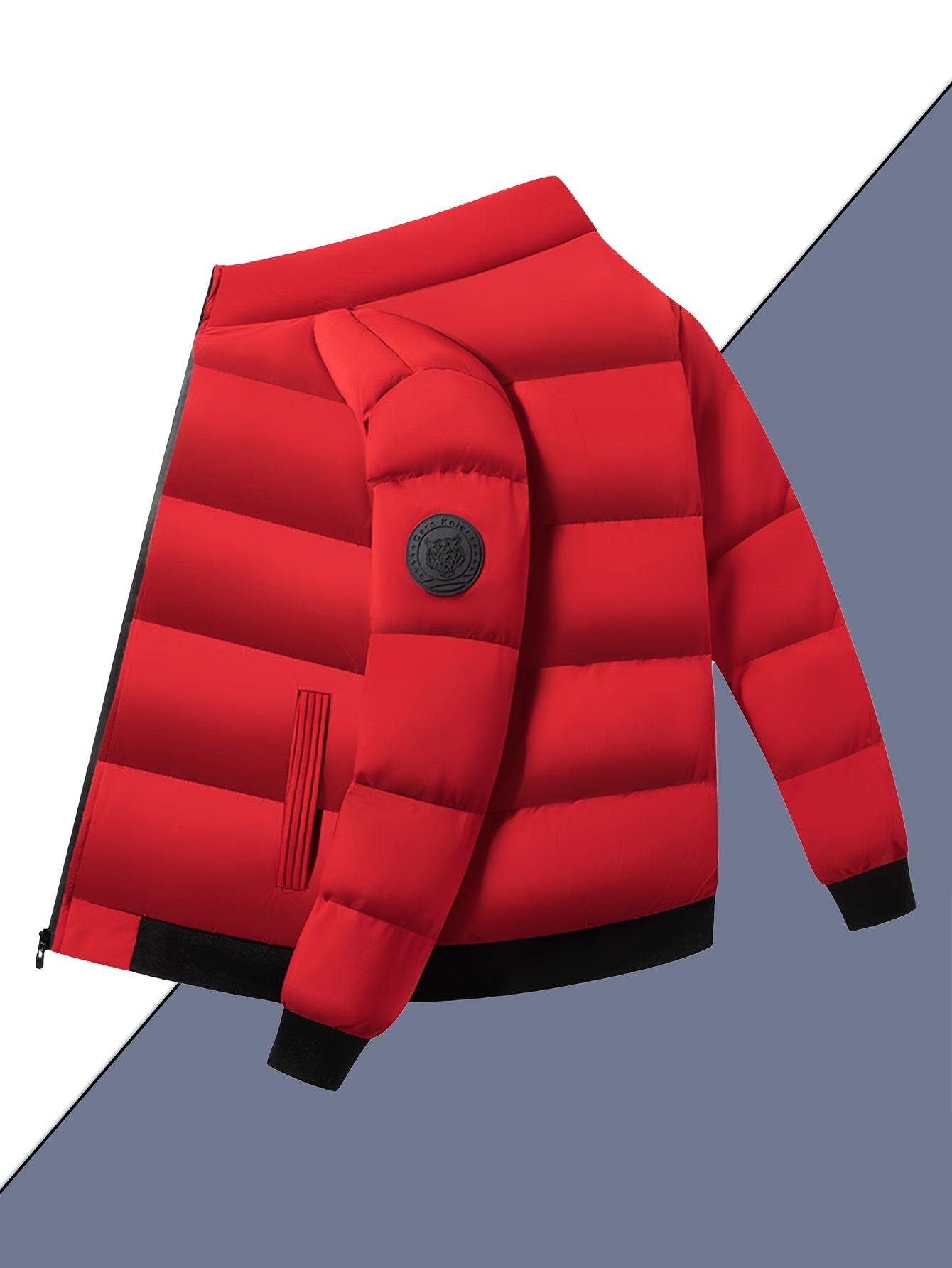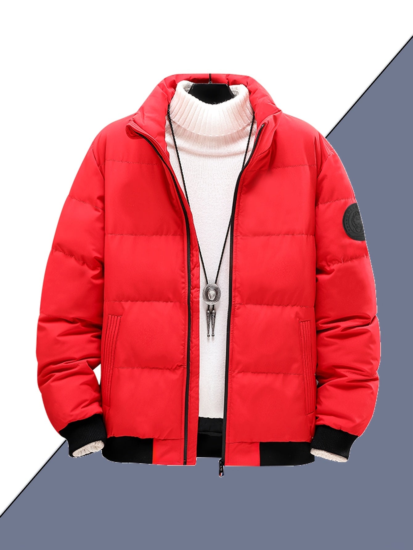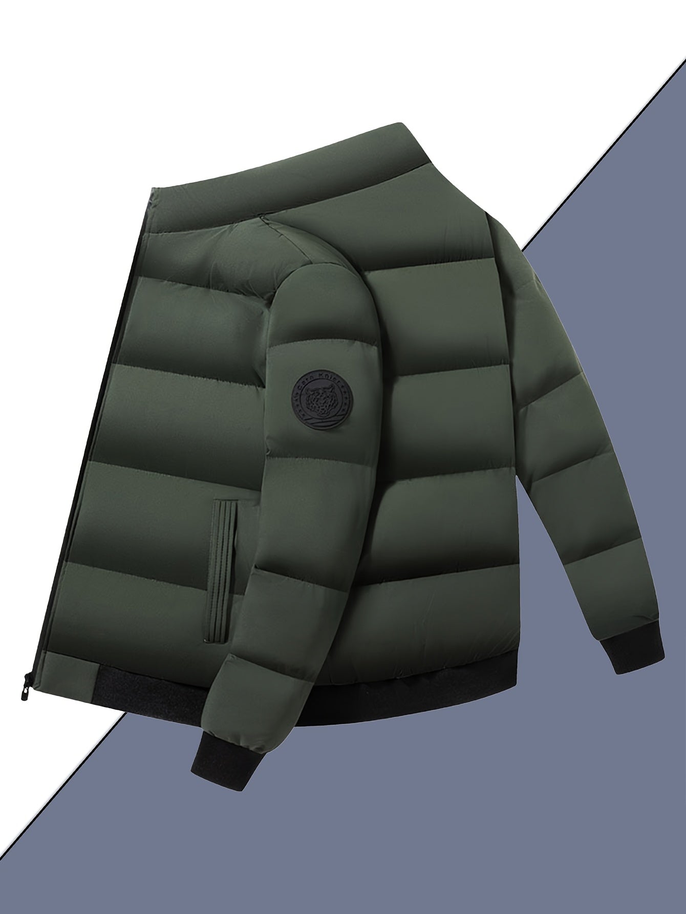 Męska zimowa kurtka pikowana ze stójką i gładką powierzchnią. Krótki, dopasowany krój tworzy uporządkowany wygląd, odpowiedni na co dzień. Kieszenie na zamek i zapięcie z przodu dodają praktyczności w użytkowaniu.