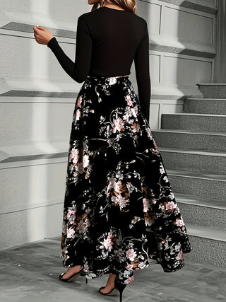 Damska sukienka prążkowana z długim rękawem | Sukienka maxi z guzikami