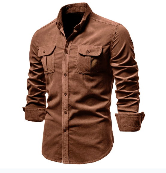 Ta męska koszula zapinana na guziki ma szczegółowe kieszenie na klatce piersiowej z klapkami oraz klasyczny kołnierzyk. Zaprojektowana z długimi rękawami i prostym krojem, zapewnia schludny wygląd odpowiedni do swobodnych i codziennych stylizacji.