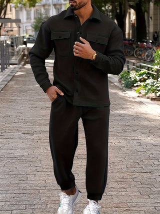 Męski komplet dwuczęściowy | Koszula zapinana na guziki i spodnie dresowe