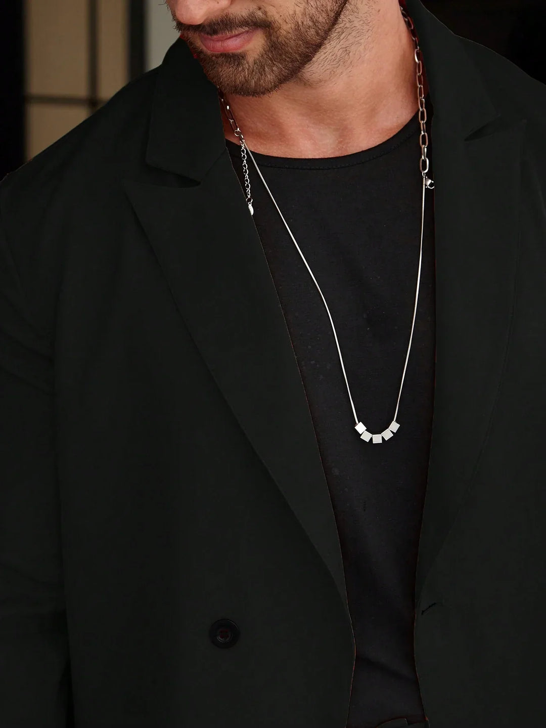 Ten męski garnitur dwuczęściowy łączy slim fit marynarkę z pasującymi spodniami, tworząc klasyczny, nowoczesny wygląd. Marynarka jest dopasowana, z przodem na guziki i klapami w kształcie notched, podczas gdy spodnie mają prosty krój z bezpiecznym pasem. Wszechstronny wybór zaprojektowany zarówno na okazje formalne, jak i półformalne.